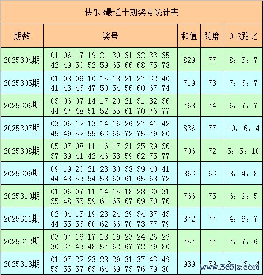 沸腾8第2025313期奖号为:01 07 22 23 28 29 31 37 43 49 53 55 57 63 64 69 73 76 79 80,其中奖号012路比为3:13:4,和值为939,跨度为79。